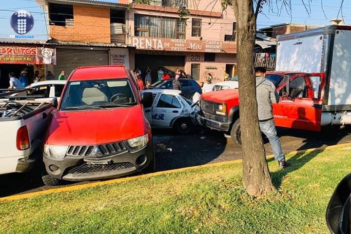 De acuerdo con datos obtenidos por este medio un camión de carga impactó contra la parte trasera de un taxi, este salió proyectado y chocó contra otras camionetas pick up que estaban adelante.