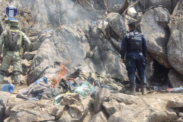 Durante recorridos pie a tierra para la disuasión del delito en una zona serrana de la localidad La Estancia, elementos de la Policía Michoacán y del Ejército Mexicano ubicaron un campamento improvisado, por ... Ver más...