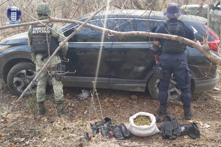 NOTICIAS 05/04/2020Aseguran SSP y Sedena droga, equipo táctico y vehículo con reporte de roboComo resultado de una acción operativa entre elementos de las secretarías de Seguridad Pública (SSP), y de la Defensa Nacional (SEDENA), se logró el aseguramiento de un costal con hierba verde seca al parecer marihuana, equipo táctico y un vehículo con reporte de robo.
