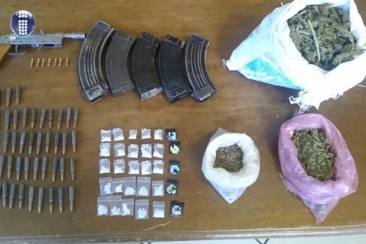 Ario, Michoacán, a 4 de abril de 2020.-Derivado de una labor operativa, personal de las secretarías de Seguridad Pública (SSP), y de la Defensa Nacional (Sedena), aseguró un arma de fuego, cartuchos, hierba verde seca al parecer marihuana, envoltorios con sustancia granulada con las características de la metanfetamina, así como dos vehículos relacionados en el hecho.