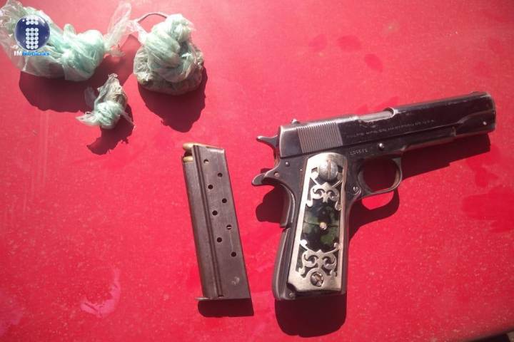 NOTICIAS 31/03/2020Detiene SSP a uno en posesión de arma de fuego y droga, en UruapanResultado de una acción operativa, agentes de la Secretaría de Seguridad Pública (SSP), detuvieron a una persona del sexo masculino, en posesión de un arma de fuego y varias bolsas que contenían hierba verde seca, al parecer marihuana; además, se aseguró el vehículo en el que viajaba el implicado.