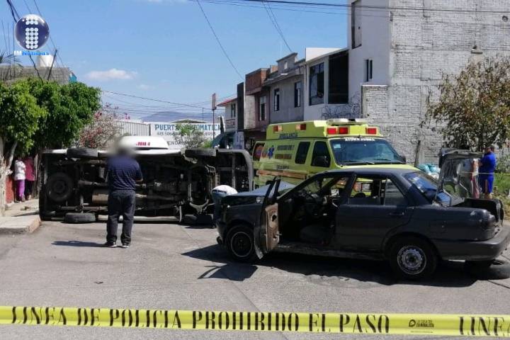 NOTICIAS 30/03/2020Vuelca combi tras ser impactada por auto en la Ricardo Flores Magón; hay 6 heridos