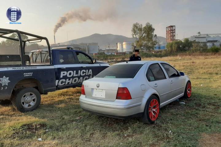 La acción tuvo lugar sobre la calle Norte del citado lugar, donde personal de la Policía Michoacán efectuaba recorridos de prevención, y ubicaron una unidad de la marca Volkswagen, el cual tiene reporte de robo.