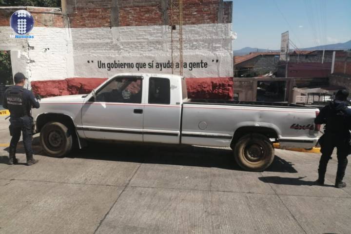 El hecho se registró sobre la calle 18 de Agosto en la colonia Amalia Solórzano, lugar donde elementos de la Policía Michoacán localizaron una camioneta marca Chevrolet, aparentemente en situación de abandono.