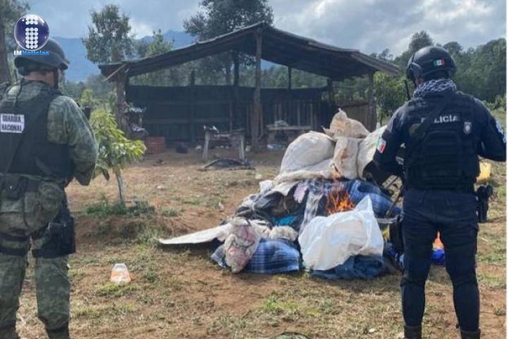 Durante patrullajes de prevención y vigilancia sobre brechas de la localidad de Patamban, los elementos de la PolicÃa Michoacán y GN, ubicaron un campame... Ver más...