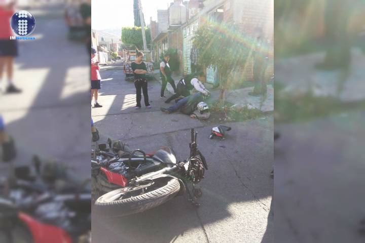 Un motociclista sufrió varias contusiones al estrellarse contra el costado derecho de un vehÃculo compacto, accidente que ocurrió en la colonia Nicolás Romero, ubicada en esta ciudad de Morelia.