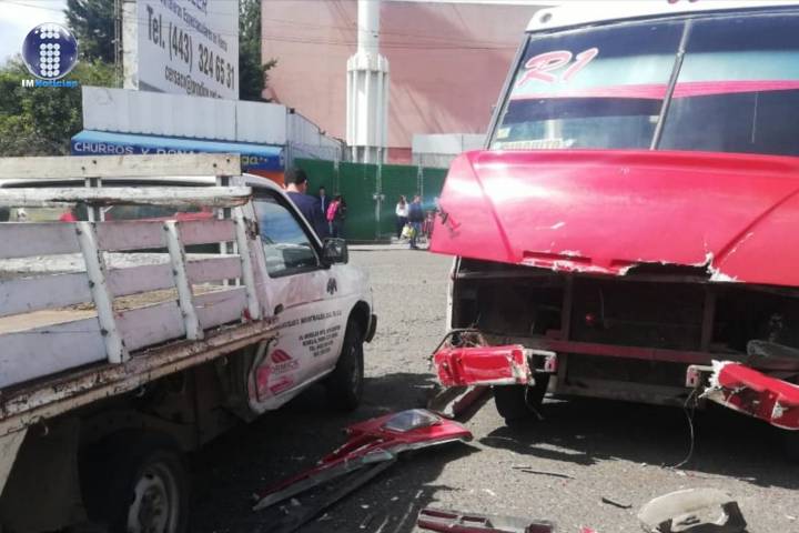 Un microbús y una camioneta protagonizaron un choque sobre el Periférico Paseo de la República, esquina con la avenida Morelos Norte, en la ciudad de Morelia.