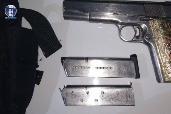 En patrullajes preventivos sobre el mencionado lugar, efectivos de la Policía Michoacán aseguraron a Hilario M., quien llevaba consigo un arma de fuego calibre .223, un cargador y 10 cartuchos útiles.
