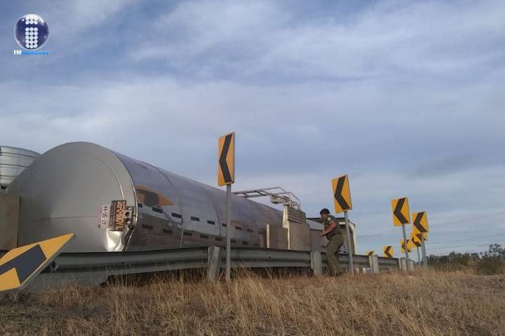 El siniestro ocurrió cuando el pesado vehículo se salió de control al pasar por una curva y se volcó sobre su costado derecho.