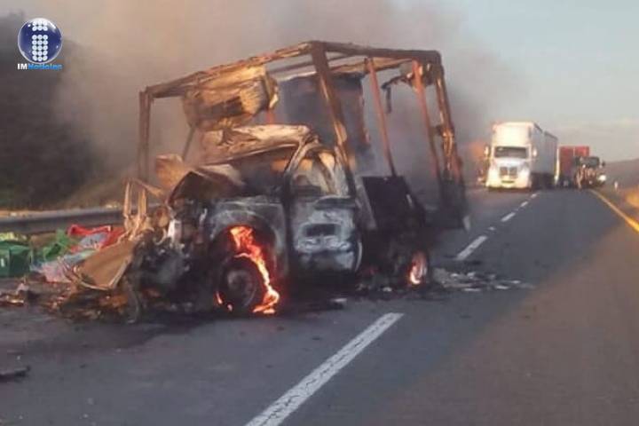 NOTICIAS 23/01/2020Camioneta choca y acaba calcinada sobre la Autopista de Occidente Una camioneta ardió en llamas tras chocar contra la retaguardia de otro vehículo, el cual huyó de la escena. El percance dejó un herido y el hecho ocurrió sobre la Autopista de Occidente, en el tramo carretero Morelia-Huaniqueo, refirieron fuentes policiales.