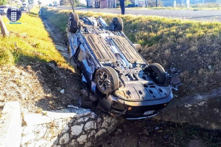 Un vehículo cayó a la cuenta central de la carretera Morelia-Pátzcuaro, donde terminó volcado y su conductor resultó levemente lesionado, así que de inmediato acudieron los paramédicos y bomberos de Protección Civil Estatal (PCE) para auxiliarlo.
