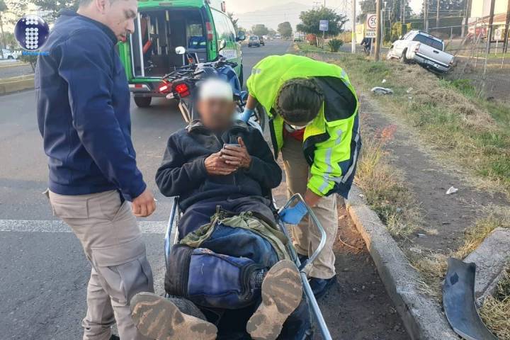 Un motociclista quedó seriamente lesionado al ser atropellado por un automóvil que después del accidente se dio a la fuga, esto en las calles de la colonia Ferrocarril, ubicada en esta ciudad de Apatzingán, a donde acudieron unos socorristas locales para atender a la víctima.