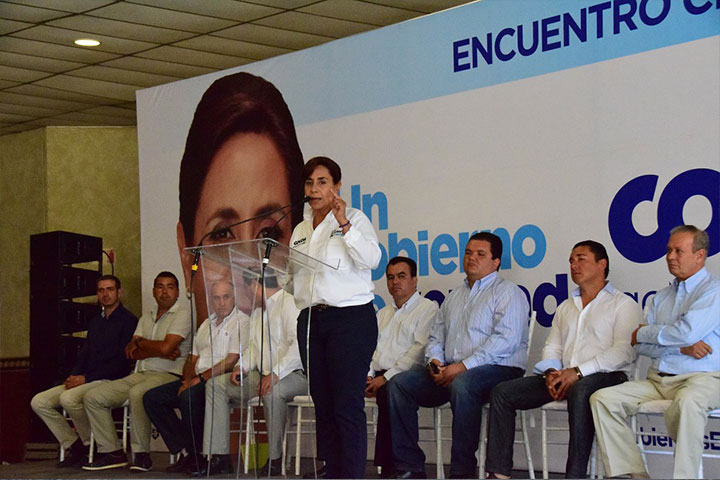 Reunida ante cientos de industriales y comerciantes del municipio de Sahuayo, este jueves la candidata por el Partido Acción Nacional, Luisa María Calderón Hinojosa, dio a conocer líneas en las que se basará al llegar al gobierno de Michoacán, siguiendo los principios de honestidad, cercanía, valor y orgullo.