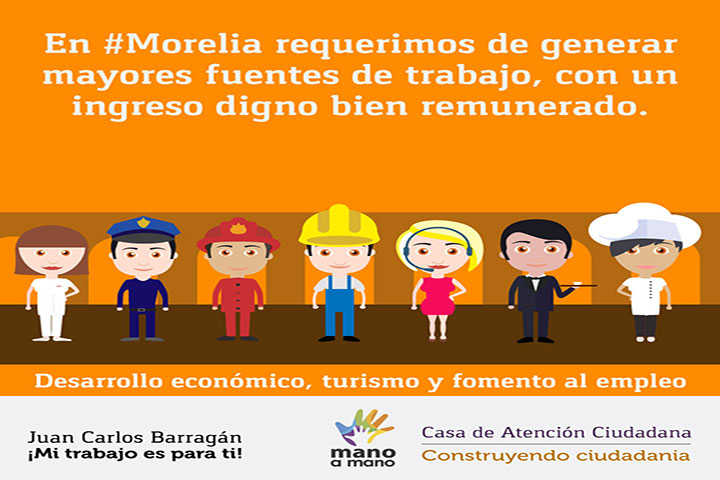 NOTICIAS 30/12/2014Propone Juan Carlos Barragán empleos bien remunerados en MoreliaDurante los últimos años la actividad económica de Morelia ha sufrido reveses que trajeron como consecuencia la pérdida de empleos y el cierre de negocios en la ciudad, "es lamentable escuchar este tipo de noticias en los medios. Urge que la ciudad reactive su economía y genere empleos bien remunerados para los morelianos. Hay que fortalecer la vocación turística y agrícola de Morelia", propuso el líder del proyecto Mano a Mano, Juan Car... Ver más...