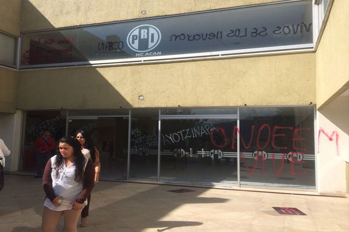 NOTICIAS 28/10/2014PRI presentará denuncia por actos vandálicos de normalistas Ante los hechos violentos y vandálicos por parte de normalistas que se presentaron en la sede estatal del Partido Revolucionario Institucional, el Presidente del Comité Directivo Estatal (CDE), Marco Polo Aguirre Chávez, señala:
