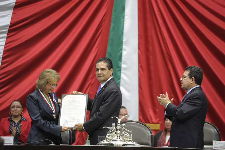 NOTICIAS 09/10/2014Ministra recibe Medalla al Mérito CívicoEn su calidad de presidente de la Cámara de Diputados, el legislador Silvano Aureoles Conejo entregó la Medalla al Mérito Cívico "Eduardo Neri y Legisladores de 1913" a la ministra de la Suprema Corte de Justicia de la Nación (SCJN), Olga María del Carmen Sánchez Cordero Dávila, por su trabajo en "bien de la colectividad nacional".