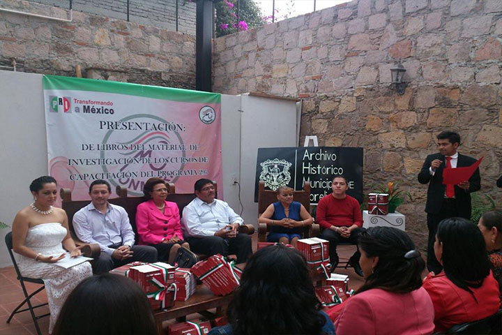 NOTICIAS 26/09/2014Realiza ONMPRI capacitación política para las mujeresCon el objetivo de que las mujeres obtengan capacitación y formación, para mejores condiciones del debate y fuerza política en Michoacán, la dirigente Estatal del Organismo Nacional de Mujeres Priístas (ONMPRI Michoacán), Martha Patricia Medina Garibay llevó a cabo la Presentación de los libros, material de investigación, de los cursos del Programa de Capacitación dos por ciento del ONMPRI Nacional.