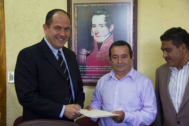 Abraham Güemez Castillo, Secretario Técnico de la Comisión Nacional de Procesos Internos (CNPI) del Partido Revolucionario Institucional y el Presidente del Comité Directivo Estatal del Partido Revolucionario Institucional (PRI), Marco Polo Aguirre Chávez llevaron a cabo la toma de protesta de los cinco militantes que formaran parte de la renovación del Consejo Político Estatal.