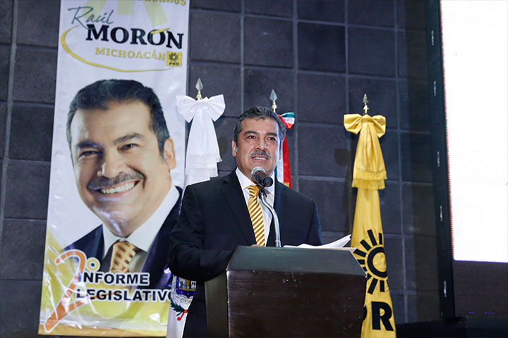 NOTICIAS 18/08/2014Morón destaca gestión en favor de la educación Rindió su segundo informe legislativo el senador perredistas michoacano, Raúl Morón Orozco, quien destacó que en su gestión en el legislativo su principal labor va enfocada en el tema educativo, rubro en el cual dijo que Michoacán no puede estar marcado por la pobreza y carencias.