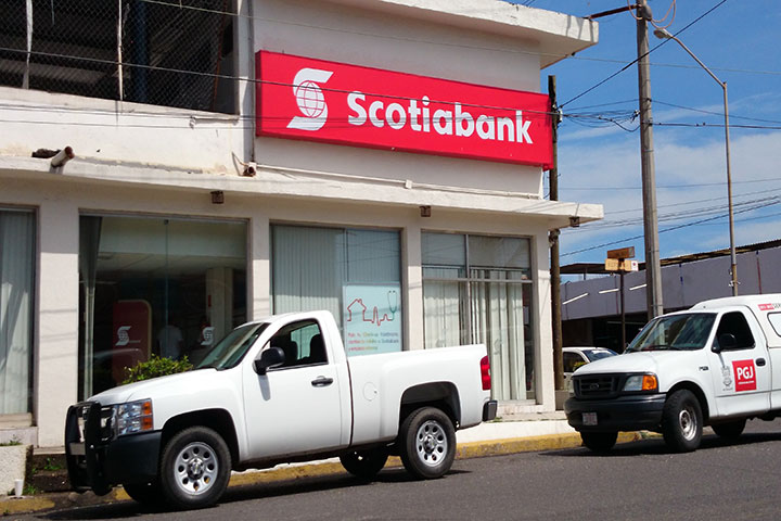 Dos hombres y una mujer asaltaron a punta de pistolas una sucursal de Scotiabank, ubicada en el centro de esta ciudad, de donde se llevaron una fuerte cantidad monetaria hasta el momento desconocida para enseguida huir, explicaron las autoridades policiales.