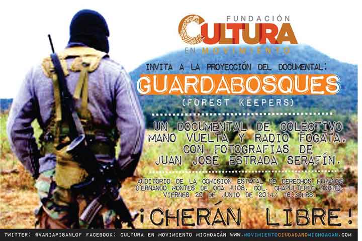 El Partido Movimiento Ciudadano a través de la Fundación Cultura en Movimiento convocó a los michoacanos en general a que disfrutar este próximo viernes del documental "Guardabosques Autodefensas y Autodeterminación en Cherán", que tiene como principal objetivo analizar la problemática de la zona.