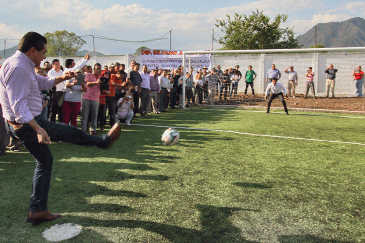NOTICIAS 10/05/2014Cumple Silvano con obras en beneficio de los michoacanosSilvano Aureoles Conejo, cumple una vez más con obras reales en beneficio de los michoacanos a fin de mejorar su calidad de vida, en esta ocasión fue en el municipio de Tuxpan, donde junto con el alcalde Carlos Paredes Correa, dio el banderizo de arranque de ellas en materia de infraestructura deportiva, alumbrado público y desarrollo social.
