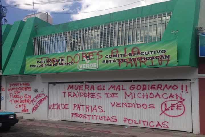 El Partido Verde Ecologista de México (PVEM) reprueba los hechos vandálicos cometidos el día de hoy por la Coordinadora Nacional de Trabajadores de la Educación (CNTE) en contra de las instalaciones de los diferentes partidos políticos en la ciudad de Morelia.