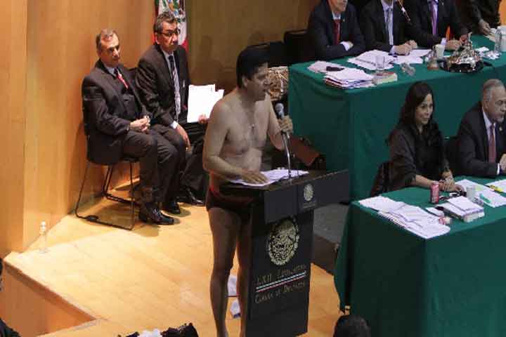 El diputado federal del PRD por Michoacán Antonio García Conejo sorprendió al pleno, al despojarse de su ropa quedando en ropa interior.