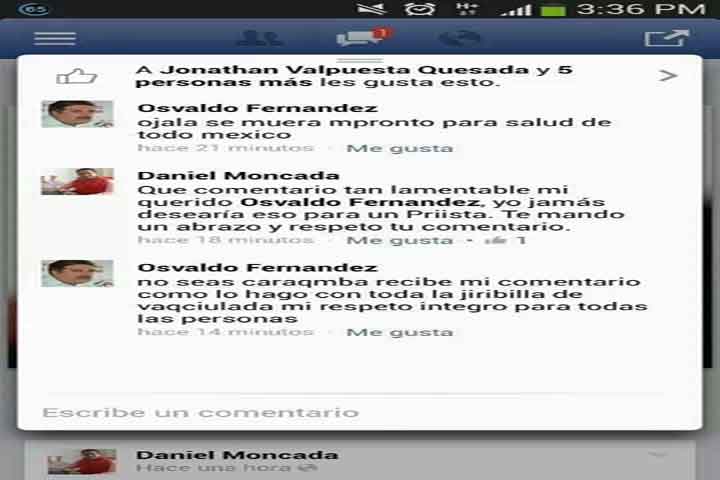 NOTICIAS 03/12/2013Dirigente priista le desea la muerte a AMLOOsvaldo Fernández Orozco, dirigente estatal del Revolucionario Institucional en Michoacán, deseo la muerte de Andrés Manuel López Obrador.