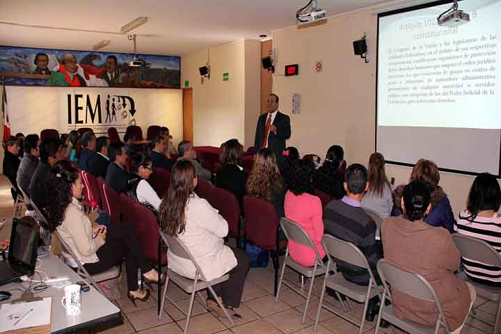 Consejeros, miembros de la Junta Estatal Ejecutiva, representantes de los partidos políticos y personal del Instituto Electoral de Michoacán (IEM) concluyeron las cinco sesiones de dos horas en las que se impartió el curso sobre Derechos Humanos por el Maestro en Derecho Constitucional, Armando Alfonzo Jiménez, quien fue acreedor al Premio Nacional de Investigación Jurídica 2013 por la Asociación Nacional de Facultades.