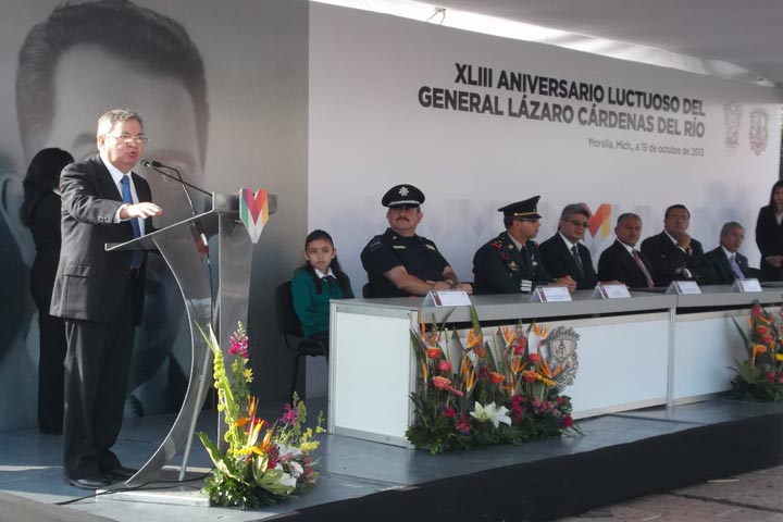NOTICIAS 19/10/2013Aniversario Luctuoso del General Lázaro Cárdenas del RíoEn el 43 Aniversario Luctuoso del General Lázaro Cárdenas del Río se hizo un llamado a que los gobernantes no tengan temor de tener gente de talento, capaces y de carácter en su gabinete para seguir el ejemplo de Cárdenas del Río quien a pesar de estar rodeado de gente que podría considerarse superior a él logró no inquietarse por ellos y sacar un gobierno adelante, aseguró el orador oficial y secretario de Cultura en el estado, Marco ... Ver más...