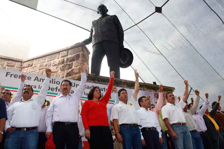 El Partido del Trabajo de Michoacán liderado por Reginaldo Sandoval Flores participó en el mitin realizado este domingo en el Obelisco a Lázaro Cárdenas, como integrante del Frente Amplio de Unidad Patriótica por la Defensa de la Nación.