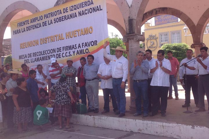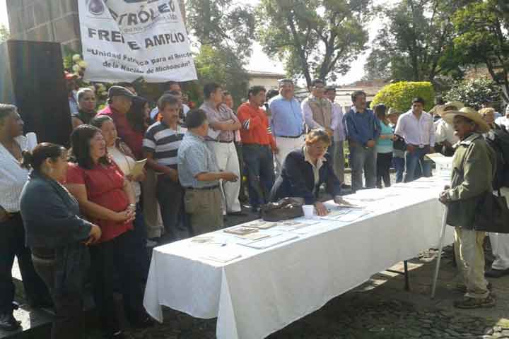 Con la instalación, este día, en las plazas públicas, de los Frentes Regionales de Unidad Patriótica para el Rescate de la Nación, en todas las cabeceras de los distritos locales, Michoacán asume la vanguardia en México en la defensa del petróleo, y se activan de inmediato las mesas receptoras de firmas con el objetivo de completar la meta del 2% del Padrón Electoral, es decir un millón 632 mil 318 firmas, con el fin de hacer vinculat... Ver más...
