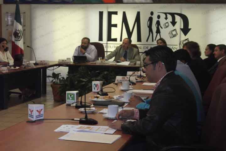 Por más de una hora representantes de partidos políticos, en sesión ordinaria del Instituto Electoral de Michoacán intentaron bajar el punto de acuerdo referente al proyecto de acuerdo del Consejo General por el cual se aprueba el estudio técnico sobre la división territorial de la entidad para fines electorales, a fin de que sea remitido al Congreso del Estado para su aprobación en su caso, es decir que se permita la redristitación.