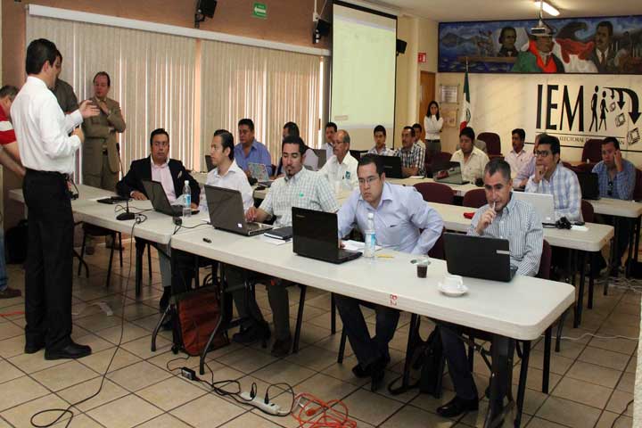 Integrantes del Consejo General del Instituto Electoral de Michoacán, representantes partidistas y de la LXXII Legislatura del Congreso del Estado recibieron hoy un curso sobre el manejo del Sistema de Distritación Electoral 2013.