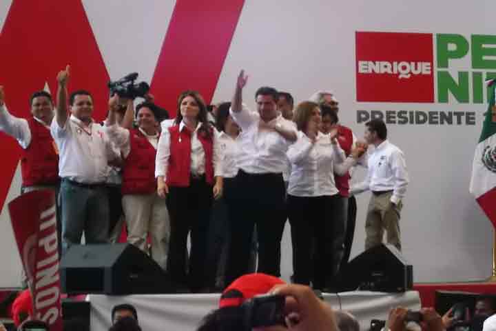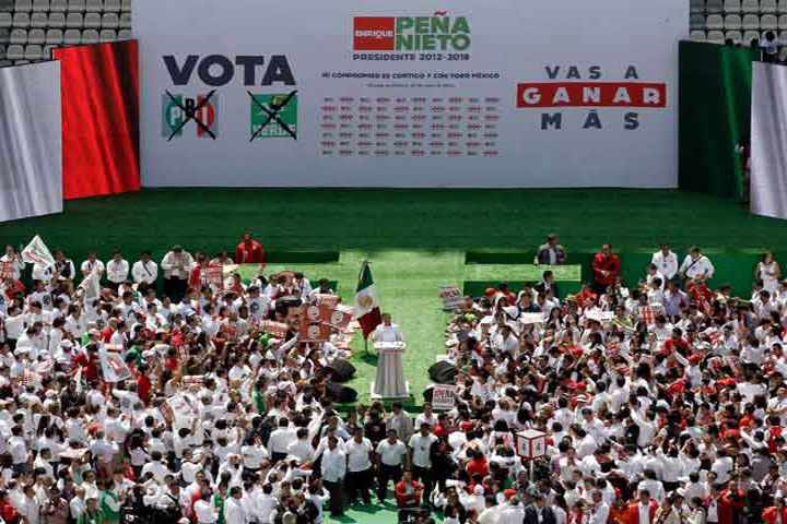 NOTICIAS 24/06/2012Peña Nieto cierra en el Estadio AztecaAnte alrededor de 100 mil simpatizantes reunidos en el Estadio Azteca, el candidato del PRI a la Presidencia, Enrique Peña Nieto, aseguró que un voto por su proyecto es un voto por el cambio, por la paz, por la libertad, por la democracia, por la transparencia.