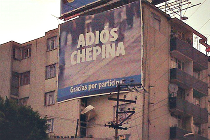 NOTICIAS 11/06/2012Colocan mantas en edificios del DF donde le dicen "Adiós Chepina"Tras el segundo debate entre candidatos presidenciables, en la ciudad de México fueron colocados espectaculares con la leyenda "Adiós Chepina. Gracias por participar".