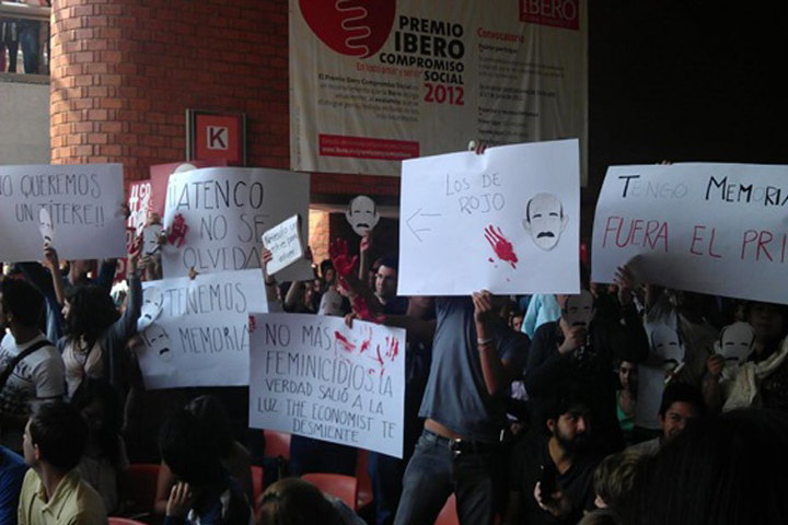 NOTICIAS 11/05/2012Responde Peña Nieto ante críticas en la IberoLa presentación del candidato presidencial del Partido Revolucionario Institucional (PRI), Enrique Peña Nieto, en la Universidad Iberoamericana transcurrió en medio de fuertes cuestionamientos y protestas dentro y fuera del auditorio José Sánchez Villaseñor.