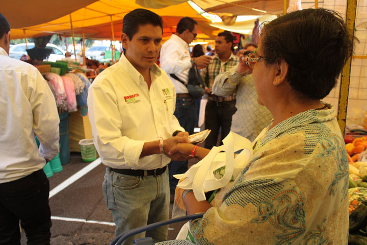 NOTICIAS 24/04/2012Visita Ernesto Núñez tianguis Los Pinos; demuestran vecinos simpatÃa por el candidatoLuego de caminar por el tianguis que se instala en Calzada La Huerta ?a la altura del Fraccionamiento Los Pinos- y recorrer algunas calles del lugar, la ciudadanÃa mostró su entusiasmo y simpatÃa por el aspirante a Diputado Federal por el Distrito X Morelia de los Partidos Revolucionario Institucional y Verde Ecologista de México (PRI-PVEM), Ernesto Núñez Aguilar y su suplente, Jonathan Sanata González, con quienes platicaron e intercambia... Ver más...