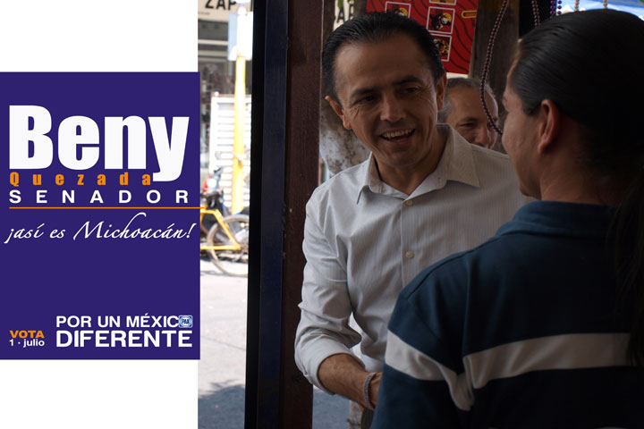 NOTICIAS 18/04/2012Beny listo para debatir sus propuestas de campaña El candidato al senado por el partido acción nacional "PAN" Benigno Quezada Naranjo recorrió las calles de Zitácuaro donde de mano en mano entrego sus propuestas a la ciudadanía que transitaba en las calles en busca del voto a su favor.