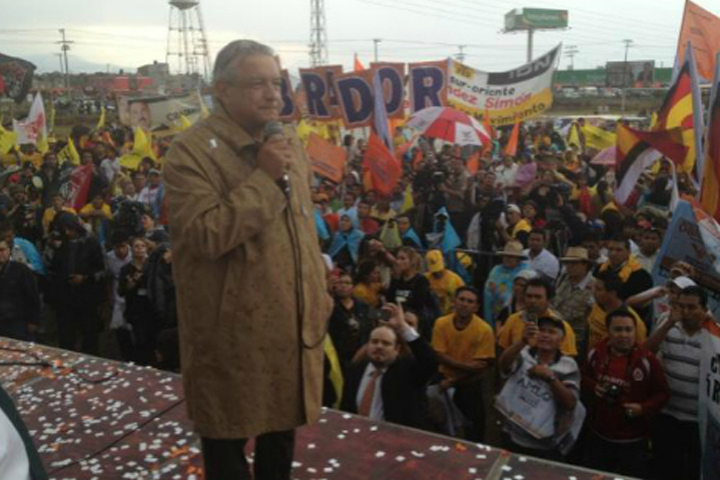 López Obrador comenzó su mitin señalando que la lluvia que azota la capital mexicana no afecta tanto como las inundaciones que no han podido resolver los gobiernos corruptos del Estado de México.