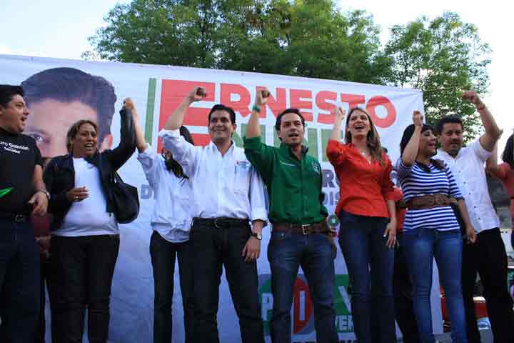 NOTICIAS 30/03/2012Ernesto Núñez con la marca F va por los jóvenesCon un gran ambiente de fiesta y con el arropo de diversas figuras de los Partidos Revolucionario Institucional y Verde Ecologista de México, el aspirante a Diputado Federal por el Distrito X Morelia, Ernesto Núñez Aguilar y su suplente, Jonathan Sanata González, arrancaron campaña en la tenencia de Santa María de Guido.