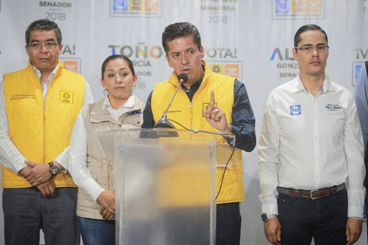 En conferencia de prensa, el abanderado de los partidos de la Revolución Democrát... Ver más...