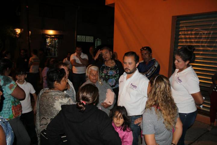 (PES), Fausto Vallejo Mora, ante vecinos de la colonia Eduardo Ruiz.