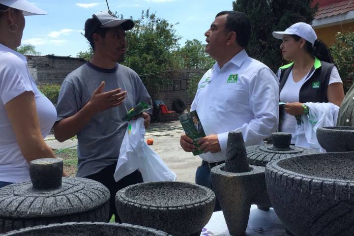 El candidato del Partido Verde Ecologista de México (PVEM) por la presidencia de Morelia, Constantino Ortiz, se comprometió con la Tenencia de San Nicolás Obispo a crear la "Ruta Turística de El Molcajete" y a brindar capacitación para dar valor agregado a todas sus creaciones en piedra volcánica.