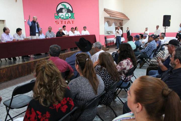 En un encuentro con agremiados al Sindicato de Trabajadores Transportistas de Materiales para Construcción, Minerales, Aguas, Maq... Ver más...