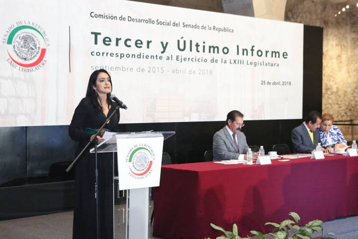 La senadora Iris Vianey Mendoza presentó el 3er. y Último Informe de la Comisión de Desarrollo Social del Senado de la República, de los trabajos realizados desde marzo de 2016 hasta el término del Ejercicio de la LXIII Legislatura, 2018.