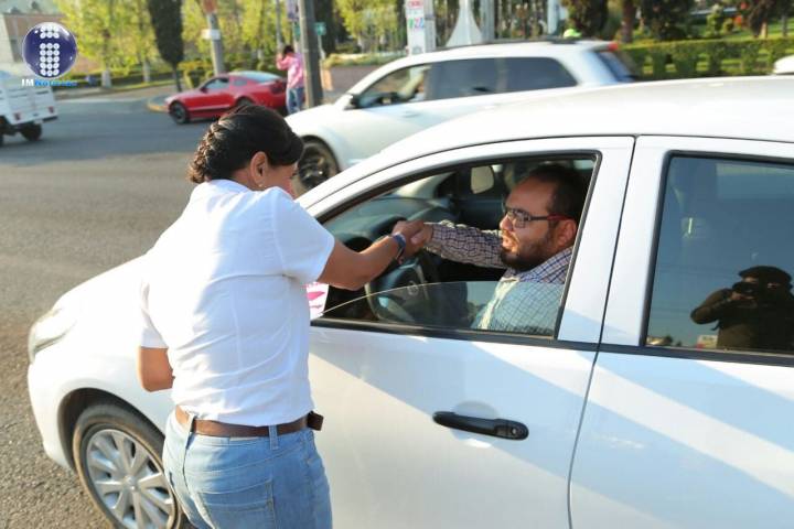 La candidata independiente por el Distrito Federal 10 de Morelia, Luisa María Calderón Hinojosa "Cocoa" hizo volanteo en el crucero Camelinas-Ventura Puente en esta capital, donde compartió sus propuestas con los automovilistas y los transeúntes.
