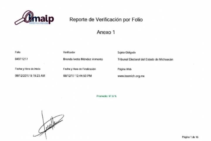 NOTICIAS 11/12/2017Califica el IMAIP al TEEM con 97.8% en transparencia y acceso a la información