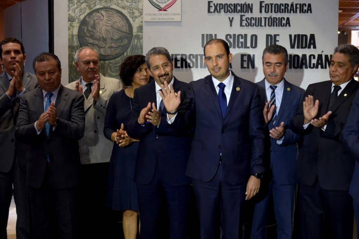 Durante la inauguración de la exposición, "Un siglo de vida universitaria en Michoacán", en la Cámara de diputados, Cortés Mendoza hiz... Ver más...